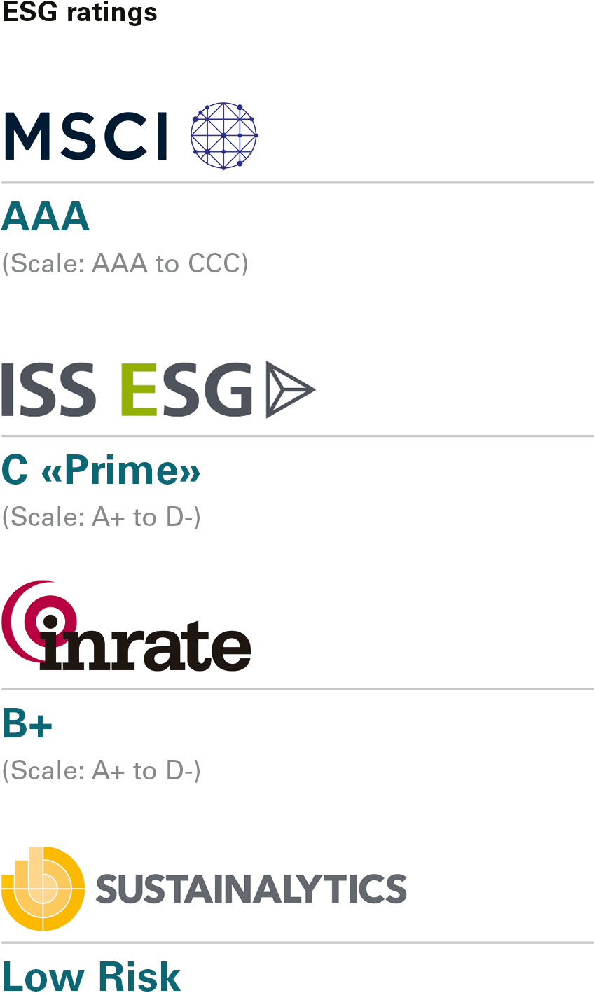 There was consistent improvement in the ratings issued for Swiss Prime Site by the ESG ratings providers Inrate, ISS ESG, MSCI and Sustainalytics. Since the end of 2021, the credit margins agreed in loan agreements with banks have been linked to the ISS ESG rating, meaning that ESG performance directly affects the interest to be paid. This enables Swiss Prime Site to further integrate financial and non-financial targets, building on the green bonds already issued.